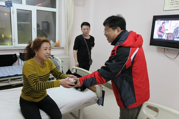 院领导在病房慰问值班人员和患者