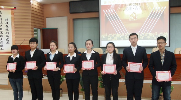 为纪念“一二·九”运动78周年,弘扬爱国主义精神,我院团委于2013年12月6日举办了以“民族魂,青春志”为主题的演讲比赛,我院党委副书记张强、副院长李晓华等领导出席比赛并担任评委,200余名同学观看了比赛。