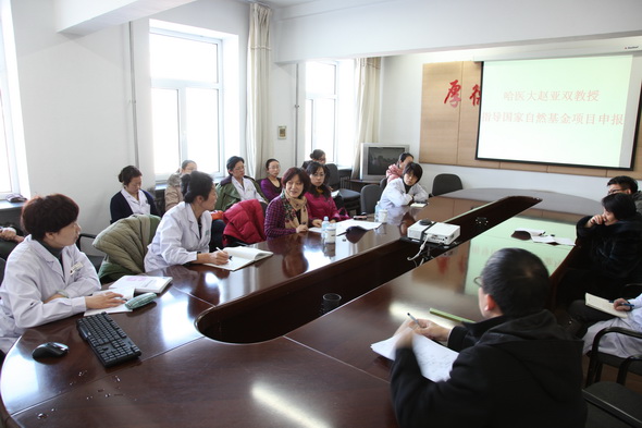 2014年1月25日上午,我院邀请哈尔滨医科大学赵亚双教授莅临我院,就如何撰写国家自然基金标书进行辅导。我院副院长李晓华、科研科科长韩秀艳及临床各科室博士、硕士、科主任近30人聆听了辅导讲座。