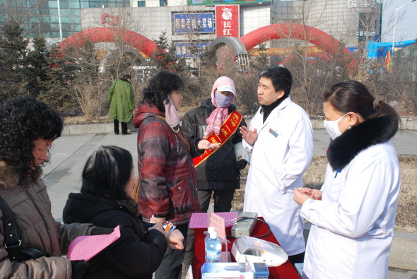 上午8点,我院监察科、宣传科工作人员就带着资料和检测设备与各科的专家来到活动现场,在中环广场指定地点搭起了工作台。