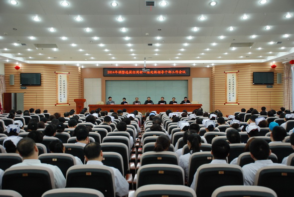 按照学院党委统一部署,2014年3月19日上午,学院在我院门诊四楼报告厅召开2014年调整选拔任用新一届处级领导干部工作会议。学院党委书记邱福利、院长刘吉成、党委副书记崔光成、党委副书记谭忠汉、纪委书记毕红霞及学院组织部、纪检监察处、人事处、党办等部门相关负责同志一行10人莅临大会。