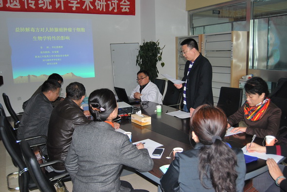 报告会由学院科技处副处长于海涛主持。会上,硕士研究生导师毕红霞教授指导的黑龙江中医药大学中西医结合临床2012级学术型硕士研究生张琦向专家组汇报了硕士学位科研课题研究内容,导师毕红霞教授向专家组介绍了研究生张琦的基本情况、该课题的前期工作基础及该课题的选题思路。与会专家潘洪明博士、张春娣博士、林岩博士、关宏博士及张忠太教授分别对课题内容进行了深入点评,肯定了该课题的可行性及创新性,提出了有价值的建设性意见,对课题实验设计进行了进一步完善。