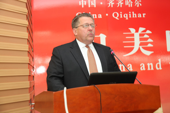 10月15日下午,中美临床肿瘤高峰论坛在我院门诊综合楼四楼报告厅举行。美国Fox Chase肿瘤中心放射物理学主任马长明博士、放射肿瘤学副主席Dr. Mark L. Sobczak教授、肿瘤外科副教授,外科肿瘤学主任和皮肤肿瘤学联合会主席Dr. Jeffrey Farma教授、胃肠道肿瘤风险评估项目主任和临床遗传学系主任Dr. Michael J Hall教授、北京大基医疗副总裁、无锡亿仁医院执行院长曾骏、北京大基医疗副总裁、医疗设备研究院院长张圈世及我院党委书记苏江、肿瘤分院院长李胜利主席台就座。来自全市及大庆医疗机构的专家、我院职工、实习学生近400余人参加会议。会议由肿瘤分院副院长佟旭主持。