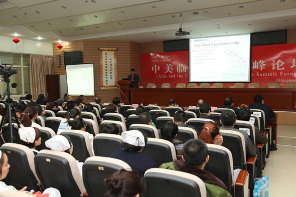在高峰论坛暨继续医学教育学术讲座上,美国Fox Chase肿瘤中心四位教授及北京大基医疗机构两位专家分别作了题为《脉冲低剂量率技术行再程放疗在治疗复发肿瘤中的应用》、《改善直肠癌患者的治疗模式》、《前列腺癌的治疗剂量和分级》、《评估癌症的遗传风险》、《高能靶向放射动力治疗》、《用PET影像进行高能X射线放疗定位和剂量的验证》专题学术报告,就国内外肿瘤新动态、新进展、新成果及临床经验等。专家们围绕相关的学科进行了学术研讨,旨在共享相关领域最新研究成果,推动该领域的共同发展,加强海内外专家学者的交流与合作。