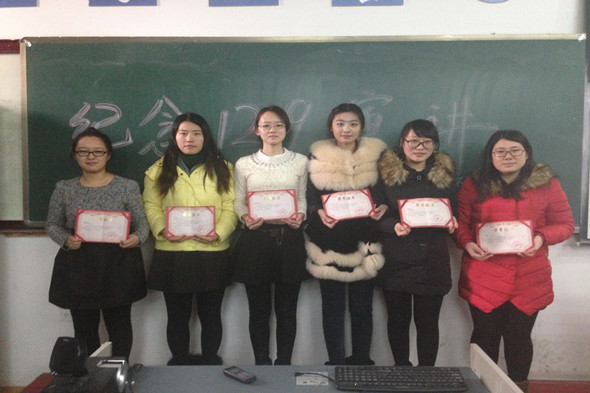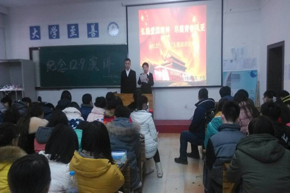 为纪念“一二·九”运动79周年,增强学生的爱国主义情感,弘扬爱国主义文化,彰显当代大学生风采,我院于12月9日举办了“一二·九”演讲比赛。本次比赛共有13名选手参赛,学生科老师担任比赛评委,11级全体同学观看了比赛。