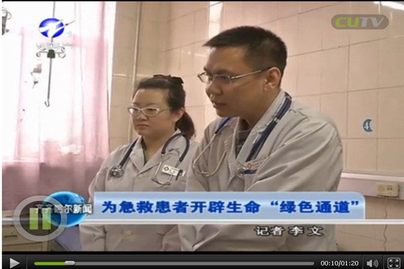 12月10日齐齐哈尔电视台,齐齐哈尔新闻栏目以“为急救患者开辟生命“绿色通道””为题,报道了我院心内四科抢救及时挽回患者生命的新闻。