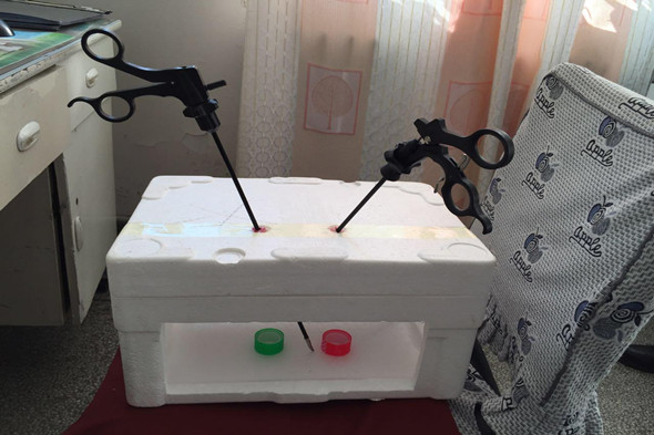 妇二科主任李跃文发明的简易模拟腹腔镜操作仪