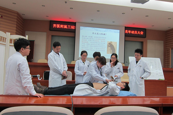 会议最后精心安排了一节教学观摩课。为了激发临床教师的思考,李院长别出心裁,在观摩课开始前针对见习教学前准备和见习教学过程两方面内容进行分组提问,在充分调动大家思维,分享不同的见解之时,适时推出内科教研室汤柏赞老师的见习观摩示范教学,李院长旨在将这种“参与式互动教学”的方法潜移默化地引入我院临床教学中,提升临床教学质量,调动学生自主学习的积极性。示范教学结束后请在场的教师结合PPT演示的“齐医附属三院临床见习教学规范”找出示范教师在见习课前准备和见习教学过程中存在的问题,并提出改进意见。台下的教师听的认真、看的仔细,本次的观摩教学取得了预期的效果,达到了培训及指导的目的,为今后见习带教提供了思路并指引了方向,得到了教师们的一致好评。