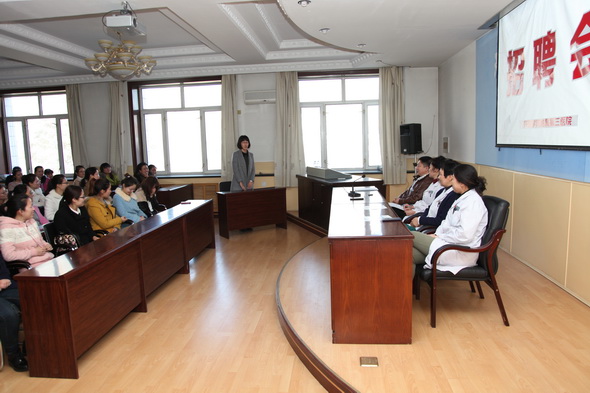 讲座结束后举办了模拟招聘会,由李晓华副院长、骨外一科白玉江主任、心血管内二科孙爽主任、妇一科关郁主任担任面试考官,10级临床和妇产共9名同学作为应聘人员参加了模拟面试。考官分别从学习、生活、专业技能、职业道德、人生理想和价值观等方面向选手们提问,每位选手面试结束后考官们都进行了认真详细的点评,指出其面试的闪光点和不足,使广大毕业生受益匪浅。
