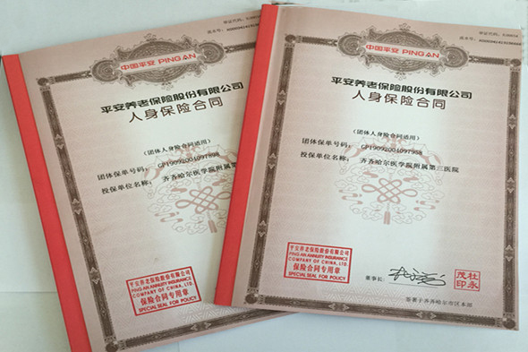 在此次医院为大家购买的平安团体保险中,包含了30类470种重大疾病。106.5元的保费其中30元是意外伤害险,保额(身故)为10000元、意外伤害医疗为5000元(100元合理费用,4900元的90%赔付);76.5元是重大疾病险,保额为3万元。本次保险期限为以一年,时间从2015年3月8日至2016年3月8日。