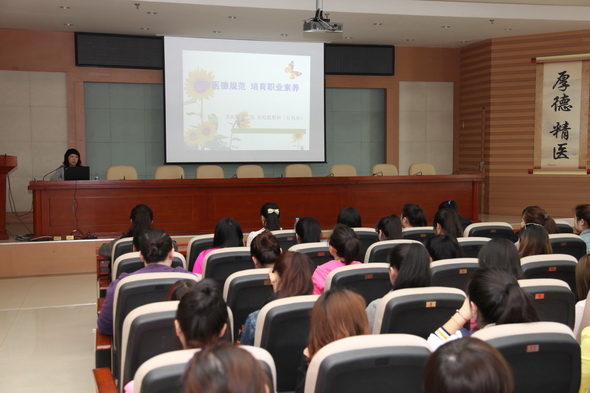 为加强医德医风教育,提高职业素养,培育新入职护士的医德情操,2015年4月28日上午,我院人事科、监察科在门诊四楼报告厅召举办了以《遵守医德规范培育职业素养》为主题的医德医风教育培训讲座,我院近80名新任职护士参加了培训。