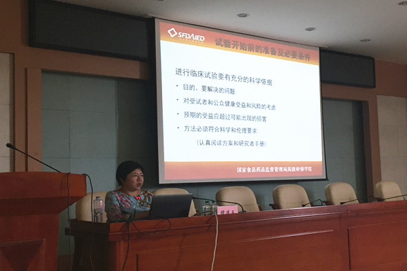 本次培训邀请到上海复旦大学附属中山医院主任药师、博士生导师、药物临床试验机构和临床药理研究室副主任、中国药理学会药物临床试验专业委员会常务委员李雪宁教授;长征医院呼吸内科主任医师,教授,博士生导师、长征医院药物临床试验伦理委员会常务副主委、CFDA高级研修学院GCP培训特邀授课专家、中国药物临床试验专业委员会副主任委员、解放军呼吸专业委员会副主任委员修清玉教授,两位国内GCP权威专家前来授课。培训主要针对药物临床试验质量管理规范的解读、临床实验中的伦理审查内容及流程、II、III期新药临床试验方案设计与实施要点等主题进行了培训。