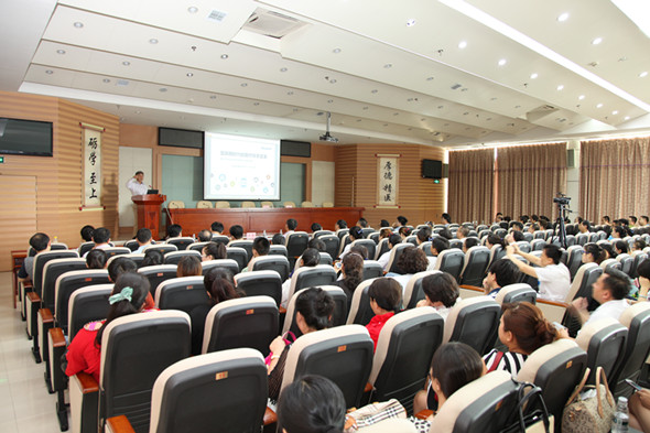 参观结束后,刘积仁博士在门诊综合楼四楼报告厅举办了题为《互联网时代的医疗体系变革》的专题讲座。讲座由医学院院长刘吉成主持,我院领导班子成员、职工、学院及附属医院领导聆听了讲座。讲座中刘积仁博士为大家详细介绍了全球医疗健康服务领域发展趋势、医疗健康体系的变革方向、IT技术对健康医疗行业的贡献、新一代信息技术对医疗行业的影响、目前“互联网医疗”的常见应用模式等内容,并与现场的医务人员进行互动交流,刘积仁博士深入浅出的讲座,受到现场参会人员的热烈欢迎。