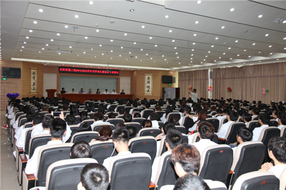 典礼的最后,学院副书记崔光成教授、副院长张晓杰教授代表学院对新同学的到来表示欢迎、向教师们表示节日祝贺的同时,分别发表了重要讲话。副院长张晓杰教授对我院的教学工作给予了充分肯定,并和出席会议的教师和同学回顾了国际、我国医学教育改革的历程,和大家分享了学院在教学工作中所取得的成绩。同时也对我院教学工作提出了更高的要求。一是要进一步更新教学理念,做好教学工作的顶层设计和规划,着手制定“十三五”教学工作发展规划;二是继续围绕我校提出的三导向人才培养模式改革,全方面开展工作;三是探讨开展各种教学方法和教学手段改革,教无定法,希望各位老师在教学中积极探索适合本学科特点的教学方法和教学手段改革,提高教学效果;四是尽快加强和完善临床教学硬件建设;五是进一步加强教学管理,特别是加强临床技能训练,见习、实习等实践教学环节的管理和考核,提高临床实践教学质量;六是继续加强师资队伍建设,健全师德建设长效机制。