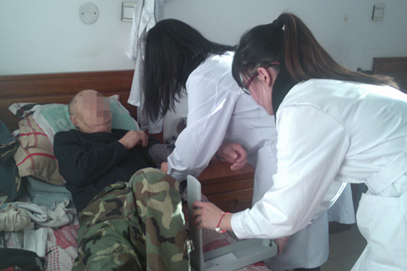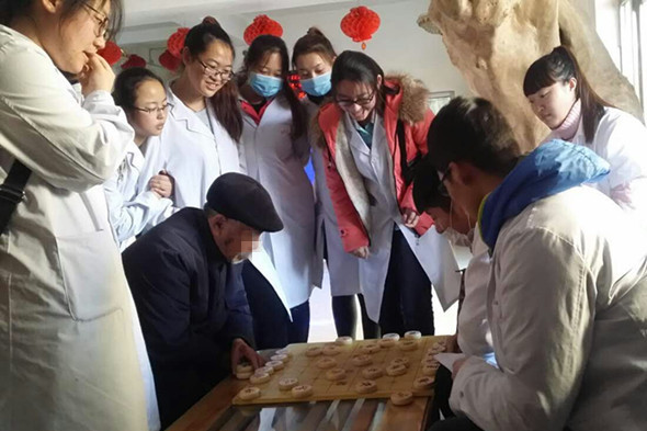 本次活动由老年公寓提供了30位老人名单,在学生中选出60名志愿者每两位同学为一组服务一名老人。活动当天,学生们携带小型医疗设备来到夕阳红老年公寓,按照老年公寓提供的名单各组分别进入老人房间为老人查体、量血压,询问老人身体状况,检查后同学们还陪老人聊天、看电视、下棋,给老人按摩、表演节目,为老人送去了欢乐,更带去一份温暖与关怀,获得了公寓老人、工作人员的认可和赞许。