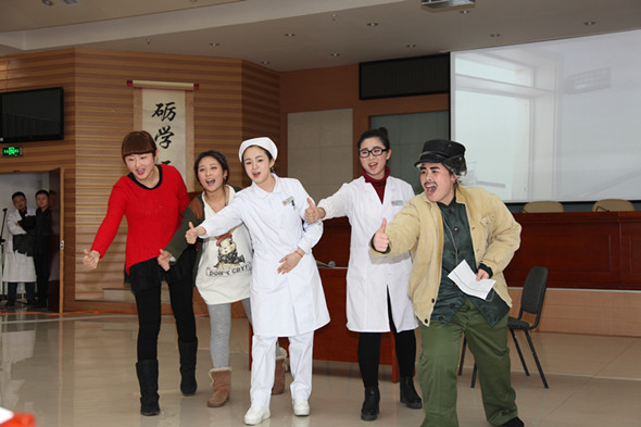 院领导班子激情澎湃的小合唱《团结就是力量》,展示了领导班子实现医院美好蓝图的信心和决心。院交响乐团演奏的《中国秧歌》乐曲点燃了新年的欢乐气氛;心理门诊丁继红表演的独舞《草原少女》,以动人的舞姿展现了草原风情,仿佛将大家带到神奇的大草原,令人心驰神往;由药剂科刘亮亮、张旭表演的男女生二重唱《风吹麦浪》仿佛用悦耳的声音、美妙的旋律将大家带入大自然的美妙世界;内分泌三科歌伴舞《感恩的心》,带着大家重温经典;检验科表演的节目三句半《夸夸咱医院》别出心裁,轻松幽默地讲述了工作亮点引得大家阵阵欢笑;骨外一科张宏鑫表演的男声独唱《南山南》、辛兆旭表演的男声独唱《你》,消化二科杨玉霞表演的女声独唱《美丽的日子》、院办李进表演的女声独唱《大海啊故乡》、结算科薛丹表演的女声独唱《火红的萨日朗》、神经内五科狄颖表演的女声独唱《我只在乎你》等曲目让现场高潮迭起;肿瘤内三科的小品《中西医结合!啥都行!》用幽默诙谐的语言,生动的肢体动作将中西医结合的优势巧妙展现,引得全场爆笑;医疗服务中心表演的配乐诗朗诵《医疗服务礼赞》抒发了医疗工作者对医院的热爱、对医学事业的执着追求,表达了无怨无悔的医者情怀,令在场医务人员无不感叹,掌声在这一刻交汇。节目中巧妙穿插了幸运抽奖环节,20位幸运职工分别获得了一、二、三等奖,现场气氛高潮迭起。