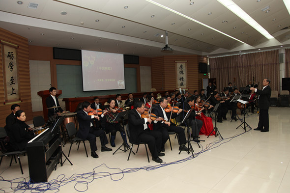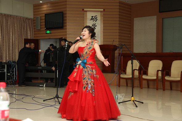 在主持人与演员的一曲《相亲相爱》的歌声中,大会圆满落幕。演出结束后,院领导班子与演员们合影留念,祝贺联欢会取得圆满成功。