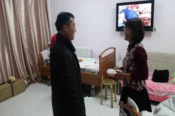 金猴送祥瑞银鹤舞新春。2月7日除夕夜,家家在团圆,户户年夜饭,此时的我院领导仍然牵挂着春节期间不能回家过年的住院患者,以及坚守救死扶伤和后勤保障岗位的一线职工。18时整,我院领导班子带领医院各职能部门负责人组成6个慰问小组,分别探望住院综合楼、门诊综合楼、后勤、肿瘤分院、东区的住院的患者和坚守在各自岗位中的一线职工,亲手将热腾腾的饺子送他们手中,并送上最诚挚的问候和新春的祝福。