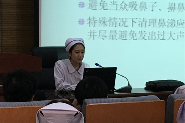 护理部主任陈秀丽在培训中也再次强调了护理礼仪规范在临床工作,特别是优质护理服务中的重要性,希望全院护理人员能将相关知识运用到平时的工作中,提升我院护理人员的形象,为患者提供更优质的护理服务。