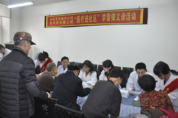 3月5日,是中国青年志愿者服务日,也是学习雷锋日。为更好地贯彻团中央的学雷锋和志愿服务精神,我院团委和学生党支部于3月4日在中车齐齐哈尔公司离退休活动室和人民社区联合开展“医疗进社区”志愿服务活动。