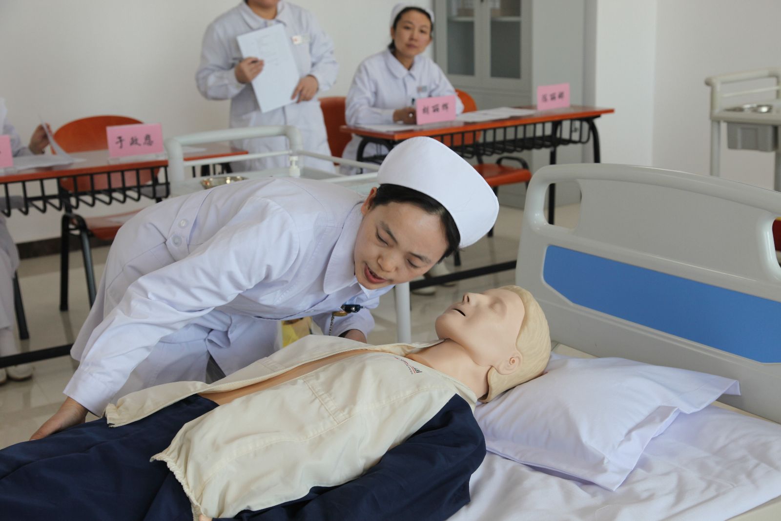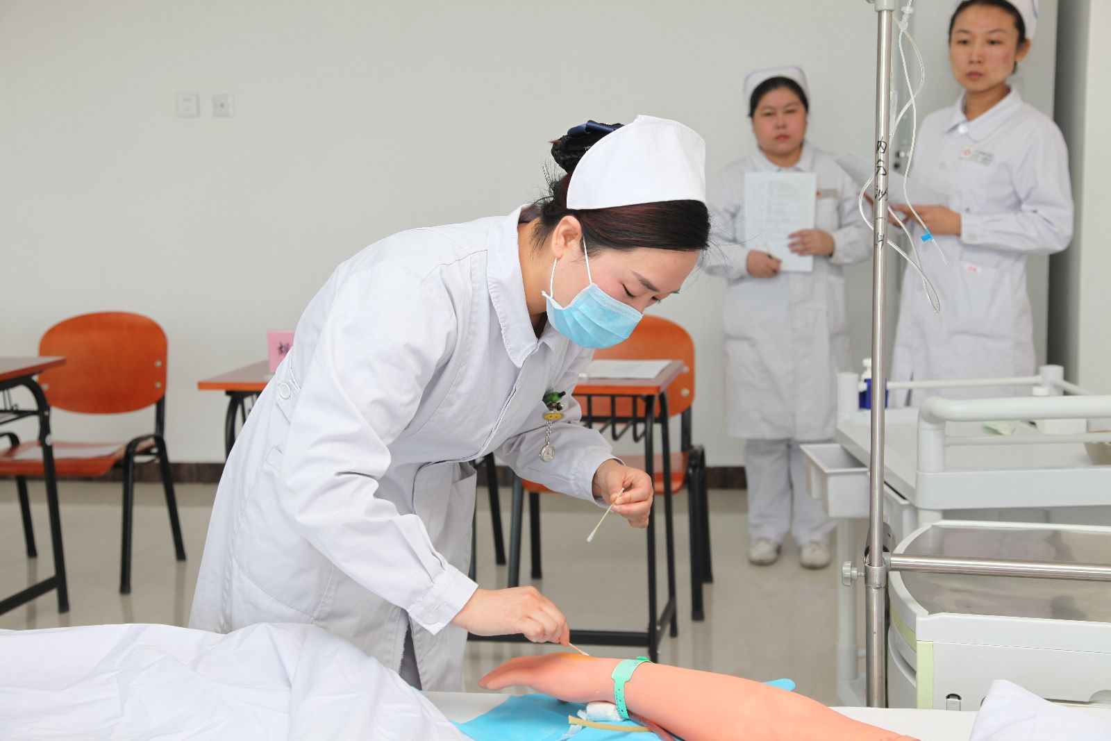 为提升我院护理人员护理服务能力和专业技术水平,激发广大护理人员立足岗位、钻研业务的工作热情和创新能力,持续改进临床护理服务质量,为患者提供满意的护理服务,充分展示“白衣天使”的良好形象,在院领导的大力支持下,我院护理部在“5·12”国际护士节来临之际,在全院护理人员中开展了护理技能竞赛评比活动。此次竞赛分为预赛和决赛两个阶段。预赛由各护理单元选出的56名优秀选手进行心肺复苏和静脉输液两项操作,经过激烈角逐,最后10人跻身进入决赛阶段。