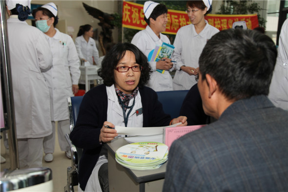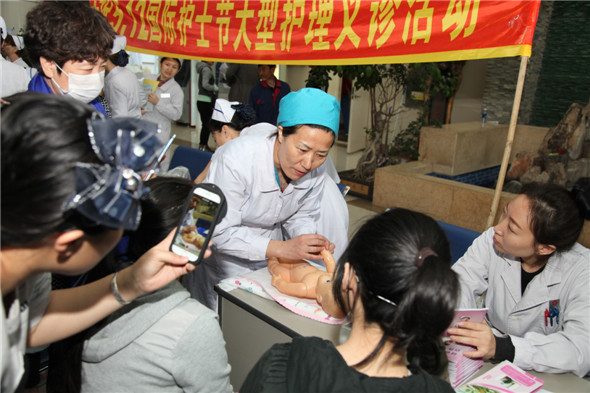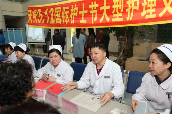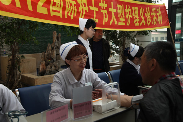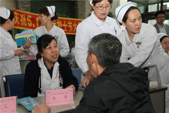 5月12日上午,我院护理部组织内分泌科、心血管内科、神经内科、呼吸科、乳腺科、肿瘤科、急诊科、骨科、儿科、康复科、妇科、产科共12个科系组成义诊小组,在我院门诊综合楼一楼阳光大厅开展“您的健康、天使护航大型护理义诊活动”。康复二科主任杜平、骨外一科主任白玉江、心内二科主任孙爽、心内五科主任张北玉、骨外五科主任孙文才、内分泌二科主任金立、内分泌三科主任单杰、妇一科医生刘淑英、产科医生董冰、骨外一科医生李玉诚、神经内六科医生刘莹友情支持,亲赴义诊现场,为义诊助力增彩。