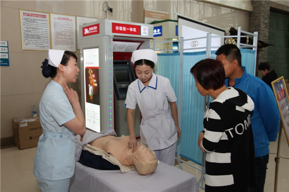 义诊现场前来就诊咨询的百姓络绎不绝,各义诊小组服务站点前都排起了长龙。护理专家们现场对前来咨询的患者给予了耐心细致地解答,根据患者的病情进行了诊疗指导,疾病答疑,并对下一步的检查、护理和康复给出了合理的意见和建议。同时,护理专家们以海报和图文并茂的宣传手册进行知识普及和健康宣教,使老百姓不用排队挂号就获取到了我院一流专家的诊疗服务和健康保健知识。现场心肺复苏术的演练及培训,让大家能够认识到遭遇突发情况,如有人晕倒时,如何采取基本的施救措施方法,并为现场群众进行实地演练,手把手给予指导。