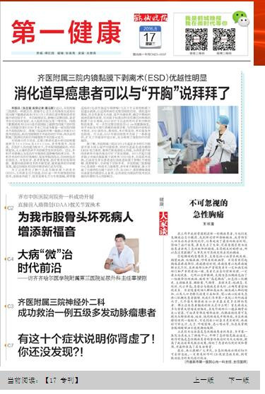 本报讯(张吉媛首席记者廉玉晖)近日,齐医附属三院消化一科副主任、腔镜中心主任王明涛再次成功应用内镜下黏膜剥离术(ESD)为2名消化道早期癌患者实施早癌切除手术。术后病理证实,肿瘤已完整切除,患者术后无任何并发症,从入院到出院仅用一周时间。内镜下黏膜剥离术(ESD)是目前国际上最新的内镜下治疗技术,目前能否进行ESD手术已经成为衡量一家医院内镜水平高低的标志。附属三院是我市唯一能独立开展ESD技术的医院,此次内镜微创手术成功治疗早癌,再次证明附属三院消化内科行内镜微创手术的强大实力。