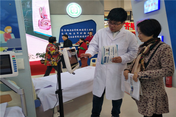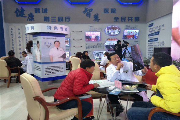 为了令鹤城百姓享受更加便利、高效和舒适的就医新感受,2014年初,我院正式启用“智慧医疗”,为东北地区三甲医院首个实现智慧医疗服务体系,成为智慧医院先行者。本次展会,我院专门在展厅内设置“智慧医院”体验区,将全新就诊体验带给参展市民。智慧医院以患者为中心,一站式服务,在诊断、治疗、护理、康复、支付等各环节,实现患者与医务人员、医疗机构、医疗设备之间的互动,逐步达到信息化,可以满足患者更多的需求,如:在线支付,查询报告、医患交流、健康宣教、护理服务、在线订餐、娱乐服务、个人健康档案等。市民纷纷体验“智慧医院” 其高效、便捷的优势令市民们叹为观止。