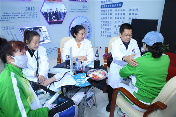 在现场,最受欢迎的莫过于医院的“名医义诊”,本次大型义诊,精心安排肿瘤内科、肿瘤外科、肾内科、普外科、消化科、心内科、神经外科、康复医学科等17个省、市级重点专科的17名学术领先的权威专家,每天9:00-16:30与鹤城百姓相约,为广大市民免费义诊检查,送上健康“大礼”。在院义诊专区,不时有市民拿着病历、X光片等慕名来到院展厅,以求得到权威专家的健康指导,一些专家的义诊台前更是排起了长龙。市民纷纷表示,齐医附属三院展会办得不只是热闹,更是实在,办到人的心坎上了!