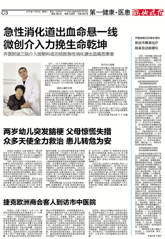 齐医附属三院介入放射科成功抢救急性消化道出血高危患者
