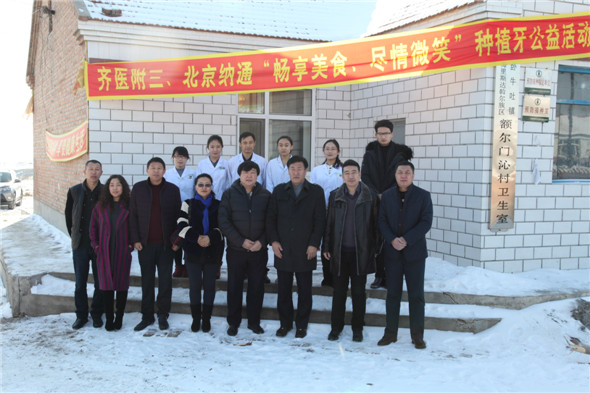 心系达族同胞健康,情暖鹤城乡土。为帮助更多贫困、特殊达族同胞解决牙齿缺失问题,令其得到免费种植牙救助,重获美丽健康生活,11月12日,我院与黑龙江省达斡尔族学会、北京纳通医疗集团共同携手开展的“畅享美食、尽情微笑”种植牙公益活动正式启动。黑龙江省达斡尔学会理事长、齐齐哈尔市科技局局长吴焕军,北京纳通医疗集团代表,我院党委书记黄海涛等领导,冒着严寒,与我院口腔科医生一道,亲赴梅里斯达斡尔族区,为达斡尔族贫困缺失牙患者免费实施种植牙医疗救治进行前期筛查,为达斡尔族人民送去温暖,带去健康。