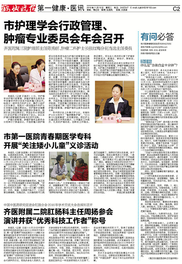 齐医附属三院护理部主任陈秀丽、肿瘤二科护士长张红梅分别当选主任委员