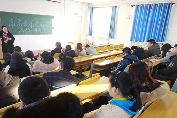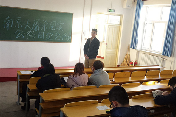今年12月13日是第三个“南京大屠杀死难者国家公祭日”,为了提高广大学生党员的爱国热情,12月13日上午,我院学生党支部在阶梯二教室,举办了“纪念南京大屠杀死难者国家公祭日”活动。