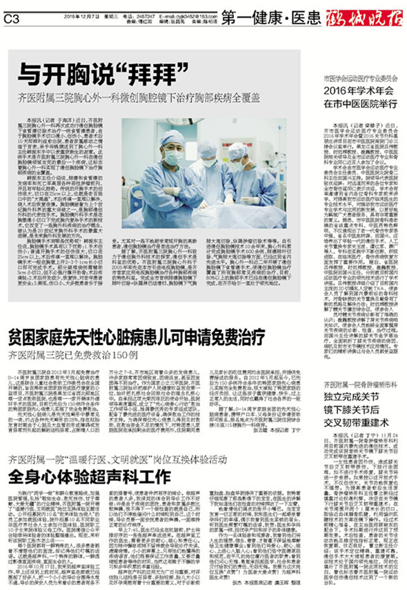 齐医附属三院胸心外一科微创胸腔镜下治疗胸部疾病全覆盖