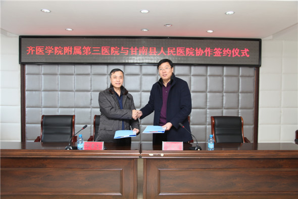 12月16日,我院纪委书记、工会主席宁景志代表我院同甘南县人民医院院长范东江签订了齐齐哈尔医学院附属第三医院与甘南县人民医院建立协作医院的协议。