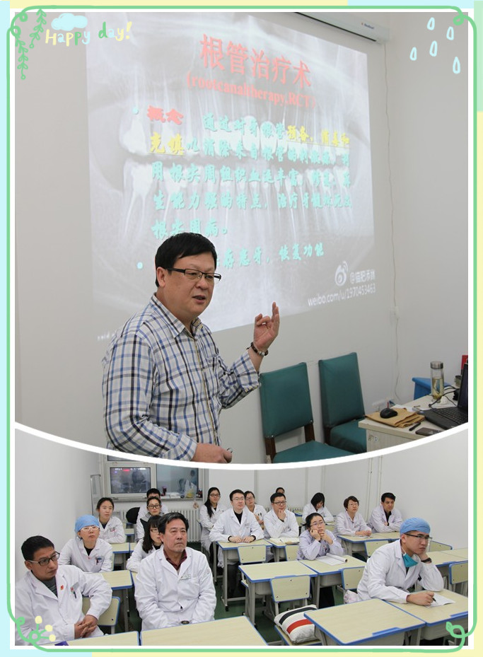 随后王主任向大家讲解了口腔内科根管治疗的先进技术和具体的操作方法,讲解了根管规范化治疗的评价标准,并结合临床实际和历史,对比地域性经济的发展和技术水平的差异,把自己渊博的学识和多年的成功经验生动、细致地渗透到每一位医生的心中。通过学习,大家了解了过往工作中的不足,并决心在王主任的带领下,解决现有问题,改进技术,积极主动的学习,提高自己的业务水平和理论素养,给患者实施最先进化和最规范化的治疗。