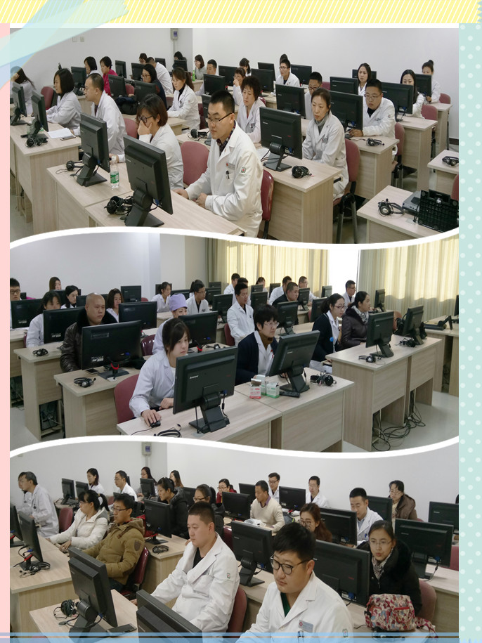 此次考试不同于以往的传统笔试,考试地点在我院住院综合楼19楼电教室进行,采取全程上机无纸化考试的操作形式。由于我院人员较多,考试共进行20场次,理论考试时间为60分钟,采取百分制,按参考人员的职称设立对应的合格分数线。此次考试针对各科室的专业进行考核,考试内容包括各专业的基础理论、基本知识、疾病的诊断和治疗等理论。