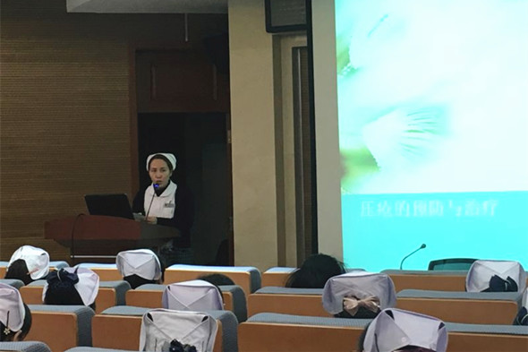 本次讲座重点围绕压疮进行,针对压疮的预防与治疗快速参考指南2014版内容进行讲解。讲座中,老师从压疮的发病机理、压疮的预防、压疮的治疗、针对特殊病例的案例进行分析、讲解。参会护理人员认真倾听,仔细做笔记,并与老师就压疮所用的敷料、工作中遇到与压疮有关的疑难问题进行了很好的互动交流。