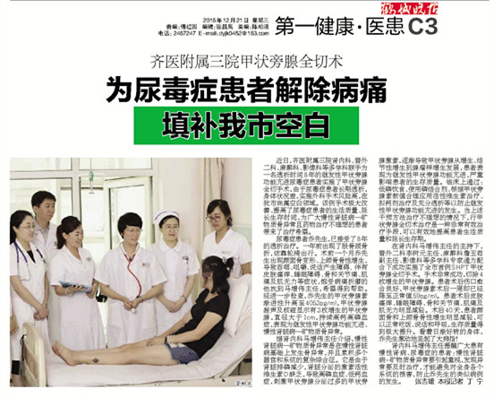 齐医附属三院甲状旁腺全切术 为尿毒症患者解除病痛 填补我市空白