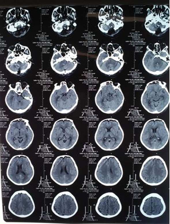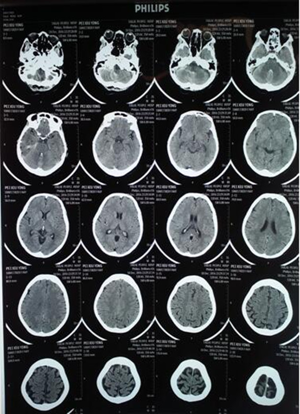 12月11日,对于裴女士及家人来说是不幸的。裴女士在入院前一天,无明显诱因突发出现头痛、头晕,伴恶心且呕吐数次(呕吐物为胃内容物),有二便失禁、意识不清、问话不答的症状。家人紧急将裴女士送入我院,行头部CT检查诊断为:蛛网膜下腔出血/动脉瘤破裂。