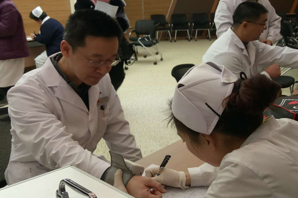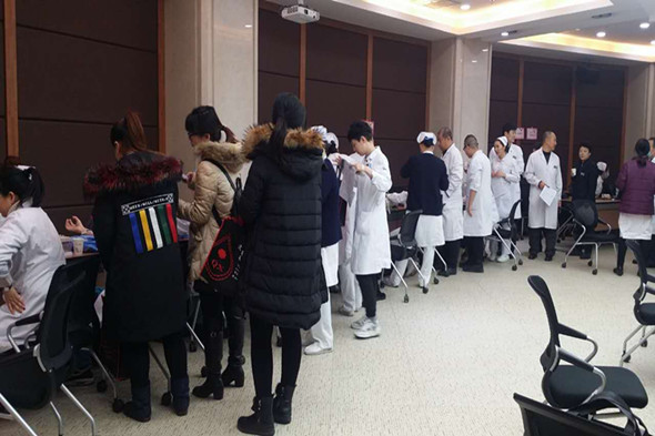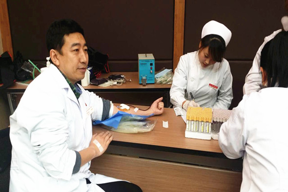 为尽快完成献血任务,确保正常的医疗工作,19日上午8时30分,我院的医护人员就在综合楼三楼会议室开始排队献血。从二十几岁的年轻护士到年过半百的资深医生,从院领导到普通职工,都积极加入到无偿献血的队伍。负责采血的医护人员指导献血者按照指定步骤,填写体检表、电脑登记、体检、初筛化验,验血合格后进行采血。很多医护人员们在献血完成后,都立刻离开了现场,奔赴工作岗位,开始一天繁忙的医疗工作。
