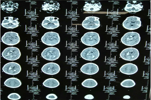 神经外二科近期收治3名大量脑出血的病人,其中2名患者已经出现了脑疝,生命垂危,入院后吴卫东主任果断决定行急诊微创手术治疗,行一侧钻孔血肿清除引流术加一侧脑术外引流术。术后病人恢复较好,一侧散大瞳孔回复,生命体征平稳,现已进入康复治疗阶段。以下为3名患者术前术后CT检查结果。