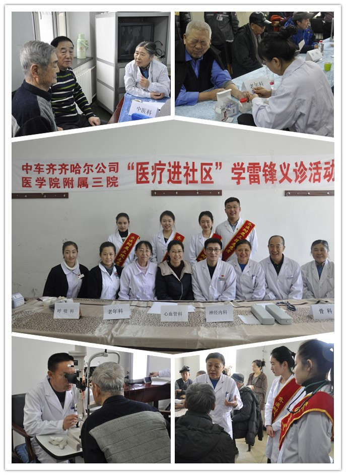 雷锋精神处处有,医者爱心时时在。为进一步推动学雷锋活动的深入开展,弘扬中华民族传统美德,培养当代大学生志愿服务意识,我院团委和学生党支部于3月3日深入中车齐齐哈尔公司离退休活动中心和人民社区联合开展了“医疗进社区”学雷锋志愿服务活动。