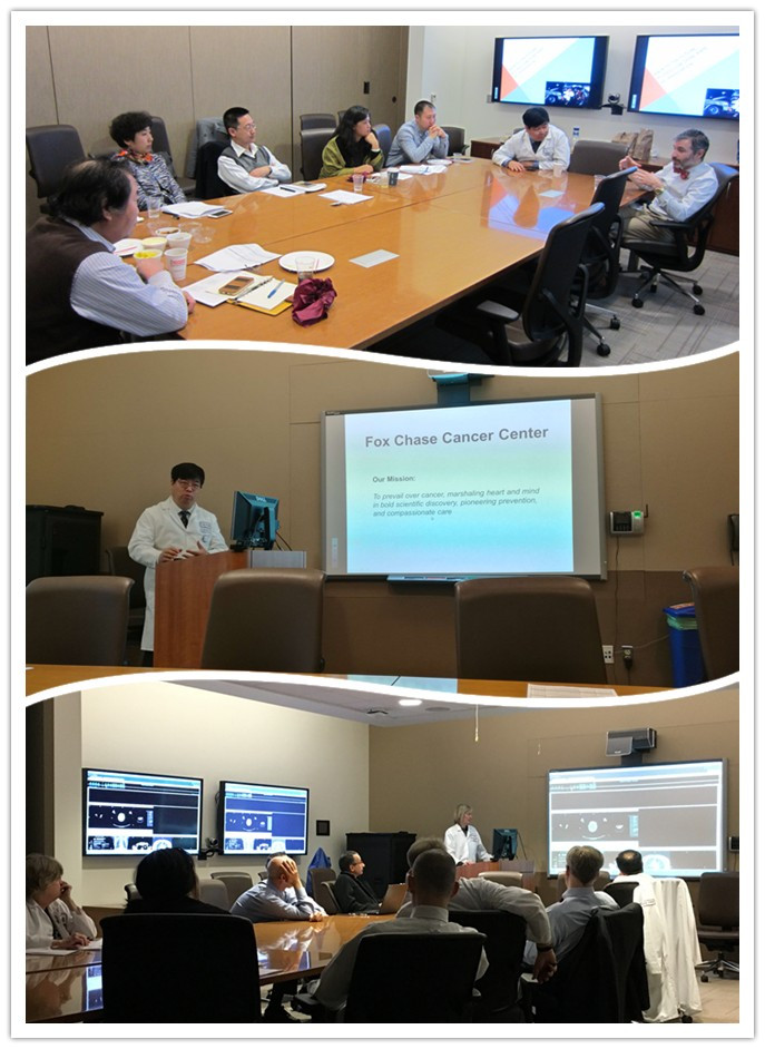 在学习考察的两周中有肿瘤外科、肿瘤内科、放疗科、影像诊断科、基因免疫等各专业多位国际著名的专家进行学术讲座,介绍本专业的学术前沿及技术进展,其中基因检测、靶向治疗加之拥有达芬奇机器人手术系统、PET-CT/MR影像诊断系统、CyberKnife立体定向精确放疗系统等国际先进的设备,Fox Chase肿瘤中心对每一位肿瘤患者进行了个性化精准治疗,提高了疾病诊治与预防的效益,显著改善了癌症患者的诊疗体验和诊疗效果。