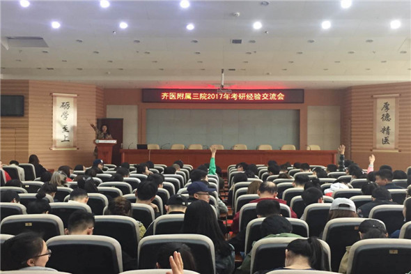 来自临床专业、被大连大学录取的赵晟同学以幽默诙谐的风格主持会议,告诫同学们要脚踏实地、持之以恒地努力学习。6名优秀的毕业生代表结合自身考研经历,围绕考研形势判断、招生政策解读、备考心态调整、作息时间安排、学校及专业选择、复习计划及应试技巧、复试注意事项等问题畅谈了自己的看法和经验,与参会同学分享了备考的艰辛与成功的喜悦,并鼓励师弟师妹明确目标、坚定信念,以积极的心态、必胜的信心投入复习应考之中。