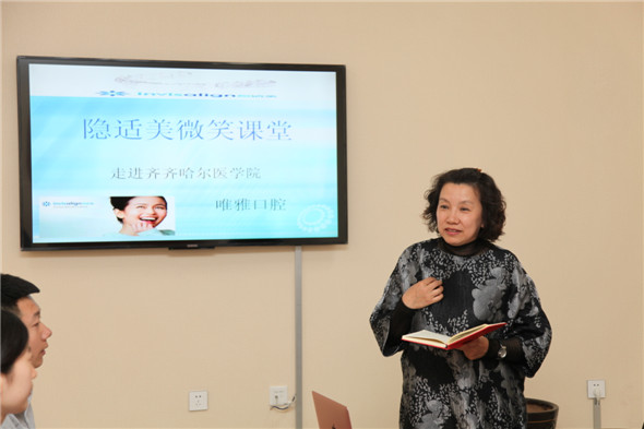 5月15日是第一个世界口腔正畸健康日。为庆祝第一个世界口腔正畸健康日的到来,我院特邀请资深专家齐市唯雅口腔医院李秋影老师、刘美彤老师进行以“隐适美微笑课堂”为主题的专题讲座。本次讲座的目的在于让口腔学生真正了解隐适美这一正畸技术,推动我市正畸治疗的发展,让每一位患者拥有健康自信的人生。参加此次讲座的有我院党委书记黄海涛,学生科长崔颖,辅导员姜志丹、杨超以及我院十几名口腔专业学生。