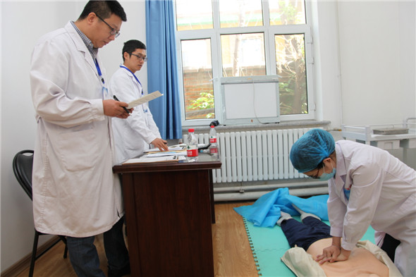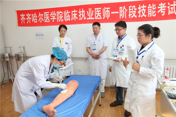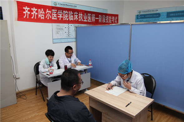 6月3日,齐齐哈尔医学院临床执业医师一阶段技能考试在我院临床技能实验教学中心开考。2013级临床医学专业191名学生在我院参加了考试。技能考试共计6站,主要考查病史采集、体格检查和基本操作技能等。本次考试是为做好国家医学考试中心关于临床执业医师分阶段考试实证研究工作,根据国家医考中心和齐医学院的相关要求而进行的。下午,学院教务处处长李静平与市卫计委领导一行四人来到我院考点巡考,对考点的准备工作,考场秩序、服务、管理给予了高度评价。