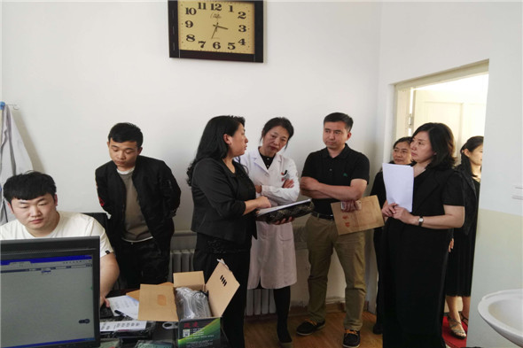 齐医学院技能中心主任高音、教务处副处长张春庆检查考场准备工作