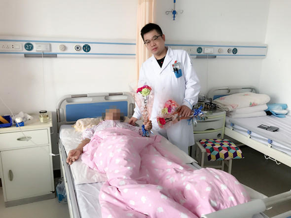 母亲节张文龙医生为岳大娘送上一束鲜花祝其早日康复